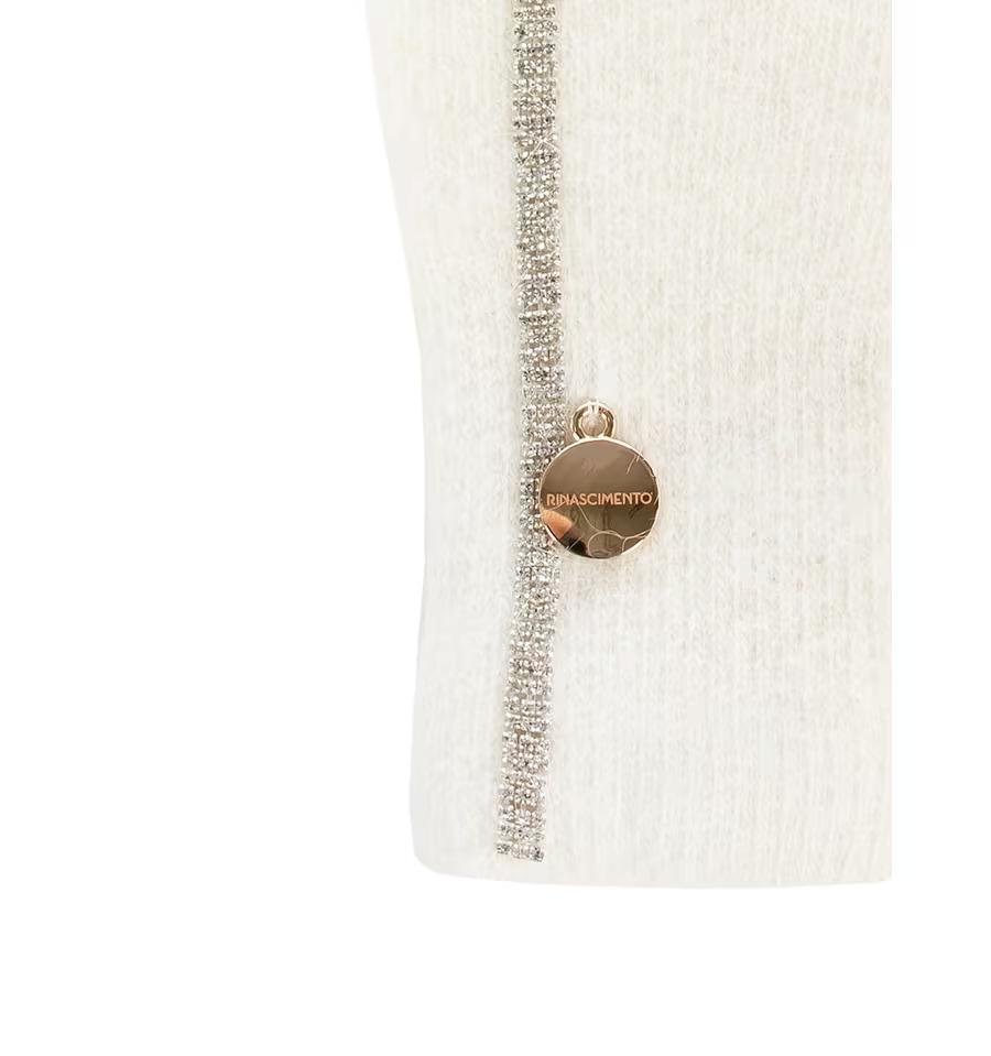 Guanto lungo, fit aderente ma morbido per una presa naturale. Tricot soffice con mano calda e leggera. Impreziosito da fila di strass e charm metallico logato. Perfetto per l'ufficio e l'aperitivo: aggiunge luce al look senza rinunciare al comfort quotidiano.