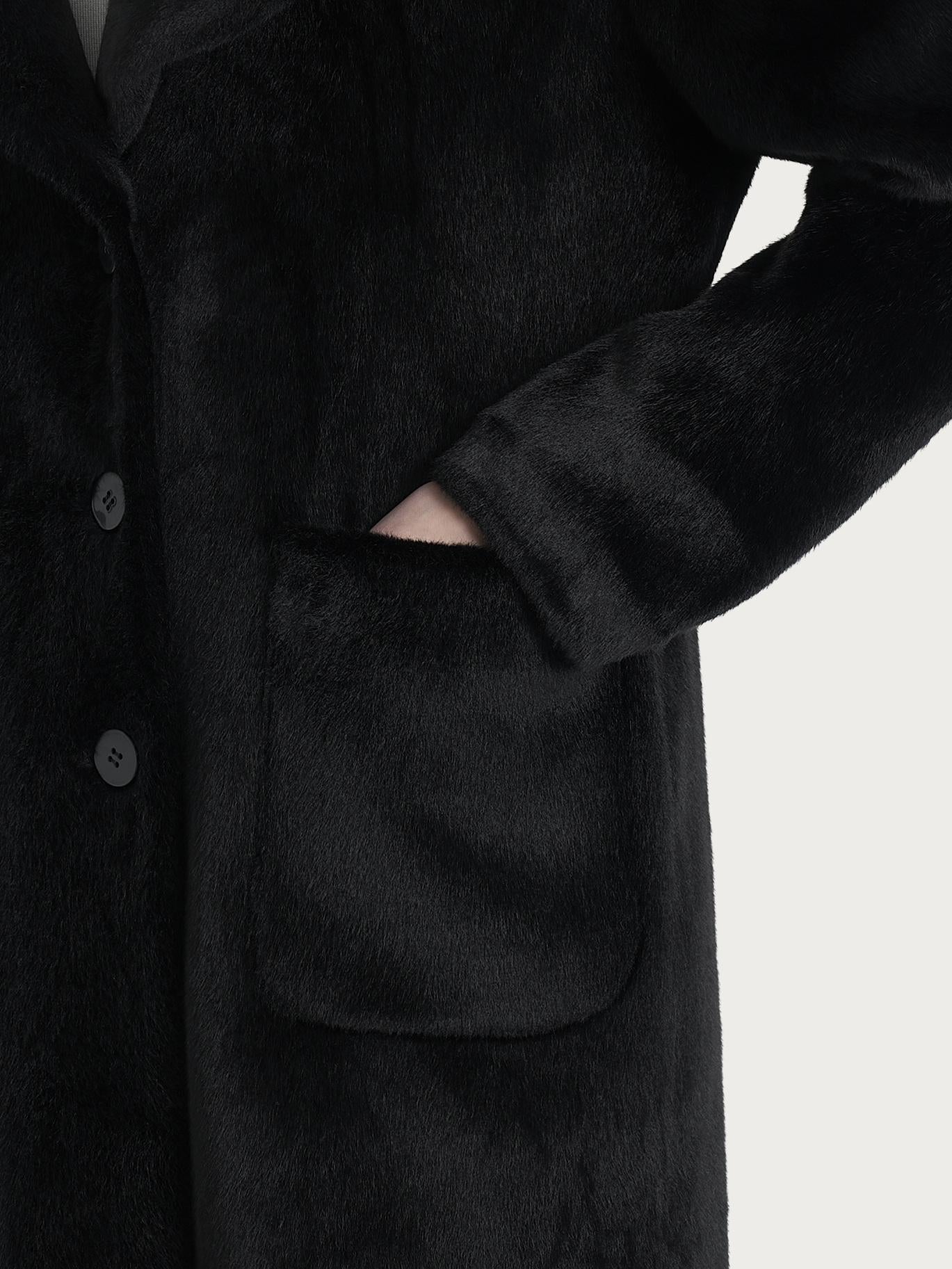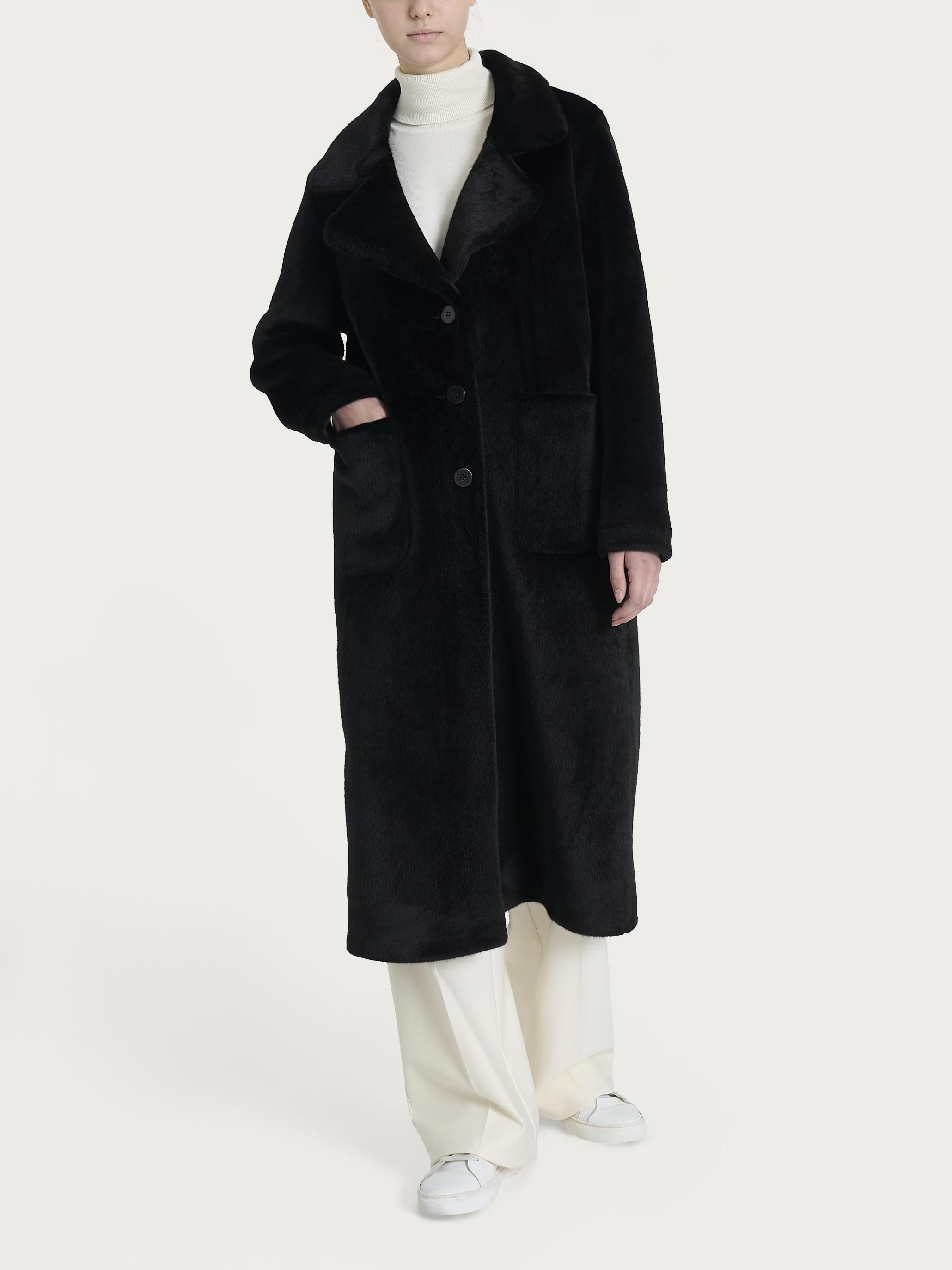 Con il suo taglio lungo e fluido, questo cappotto è perfetto per affrontare il freddo con stile.