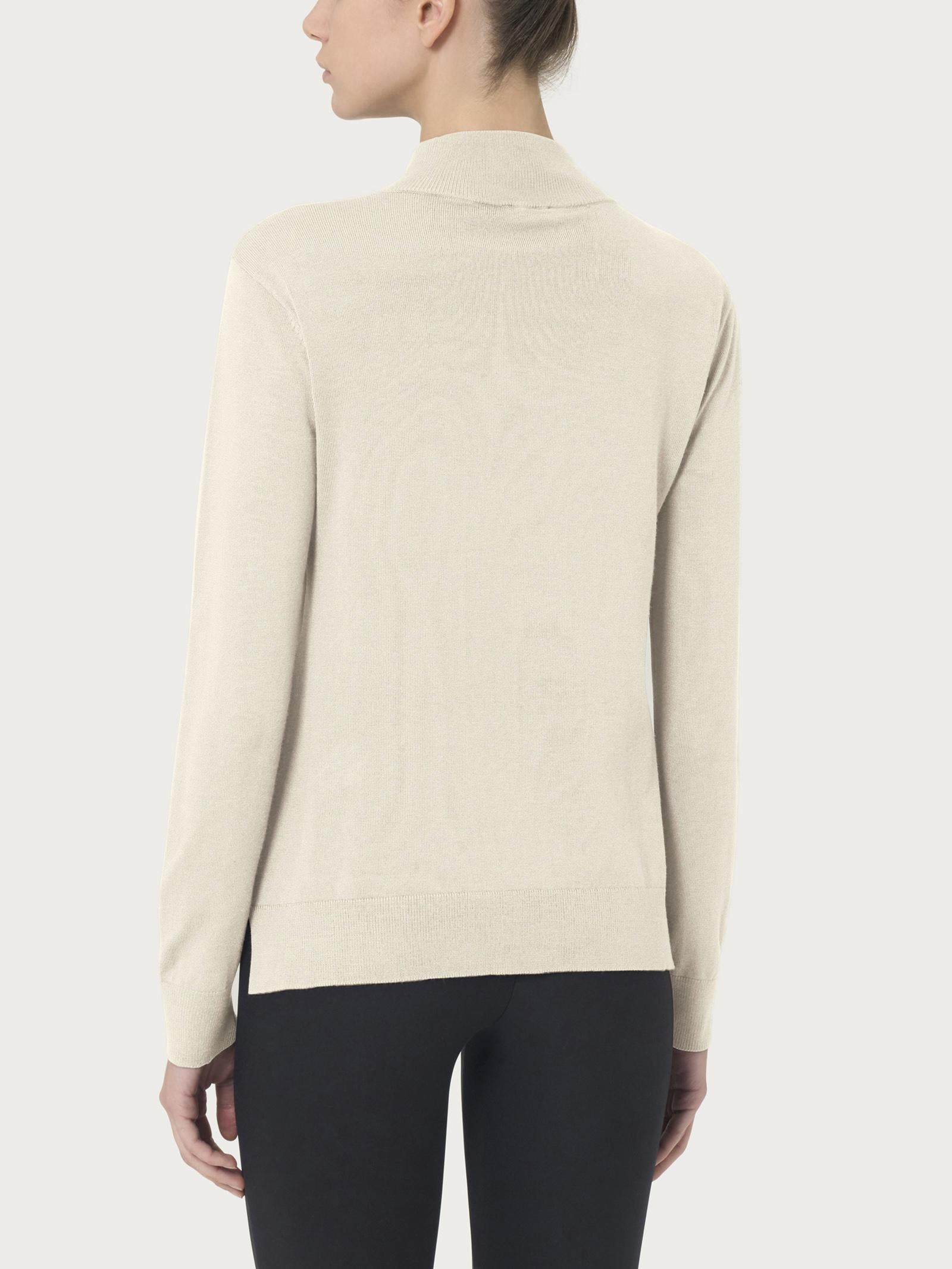 Modello lupetto in maglia rasata, con spacchetti laterali, confortevole, adatta a tutte le stagioni, perfetta sia come sopra che come sotto.