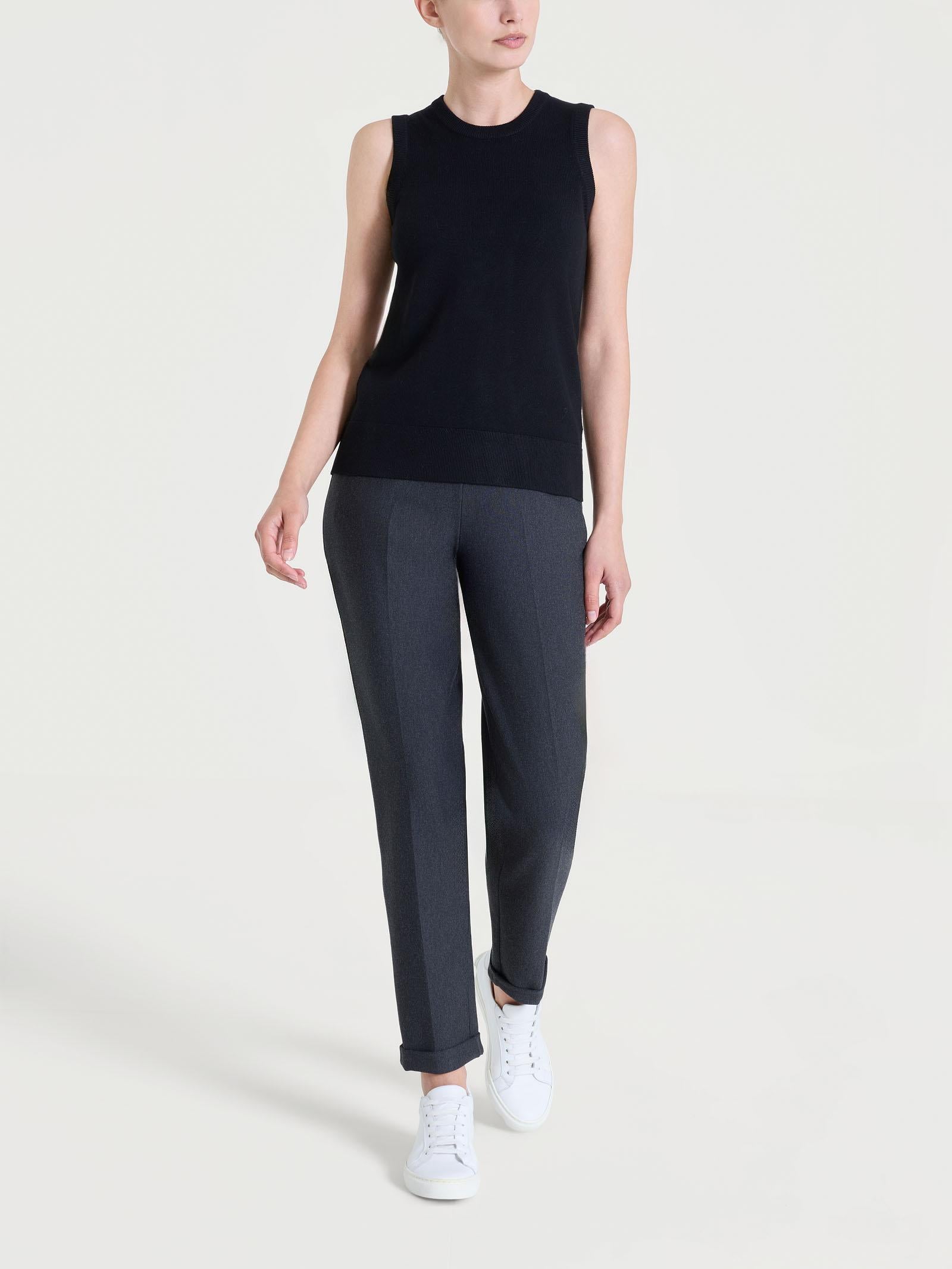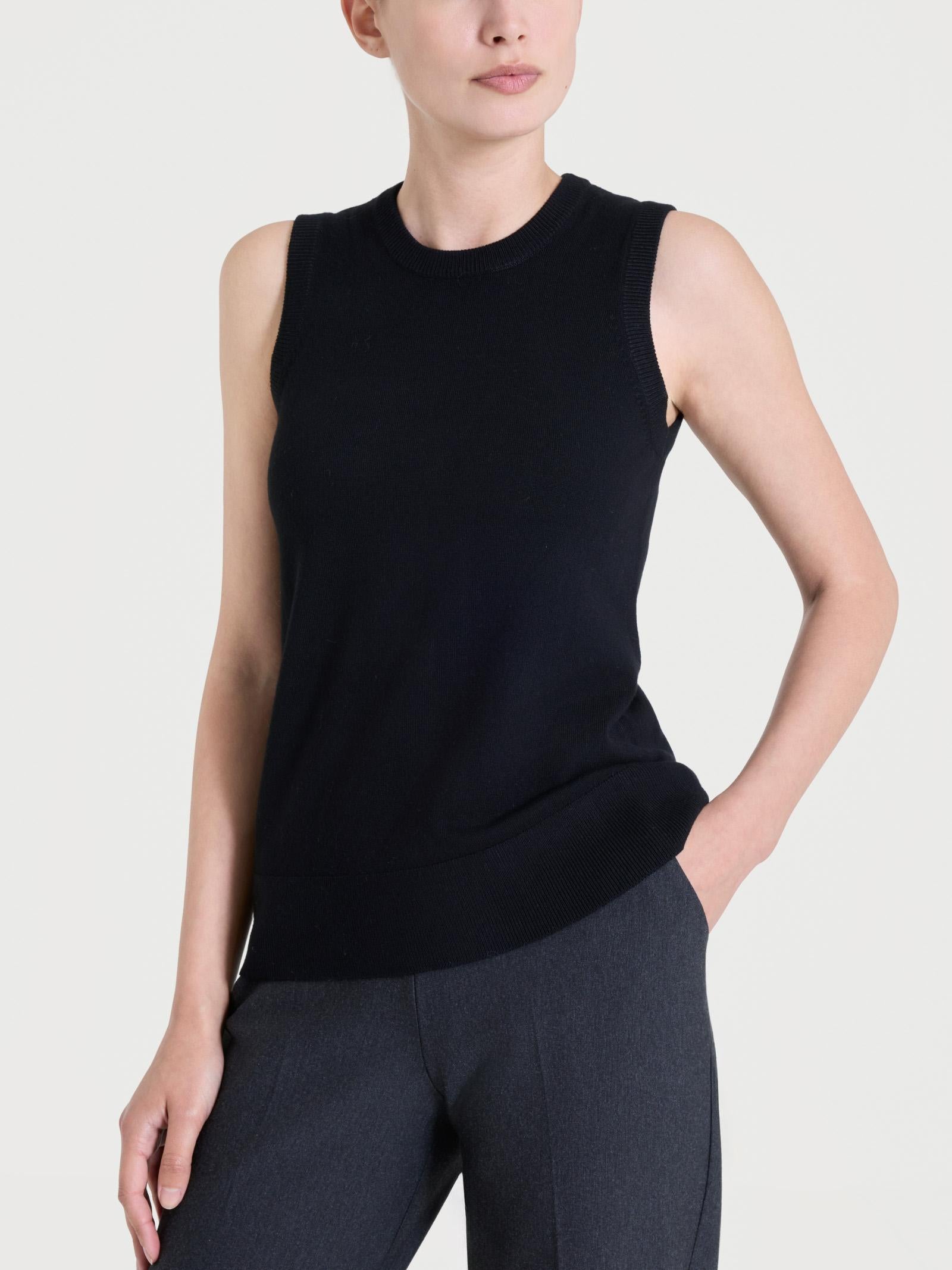 Questo modello girocollo senza maniche si adatta facilmente a tutte le stagioni, donando un leggero strato di copertura per i giorni caldi e uno strato base per quelli più freddi.