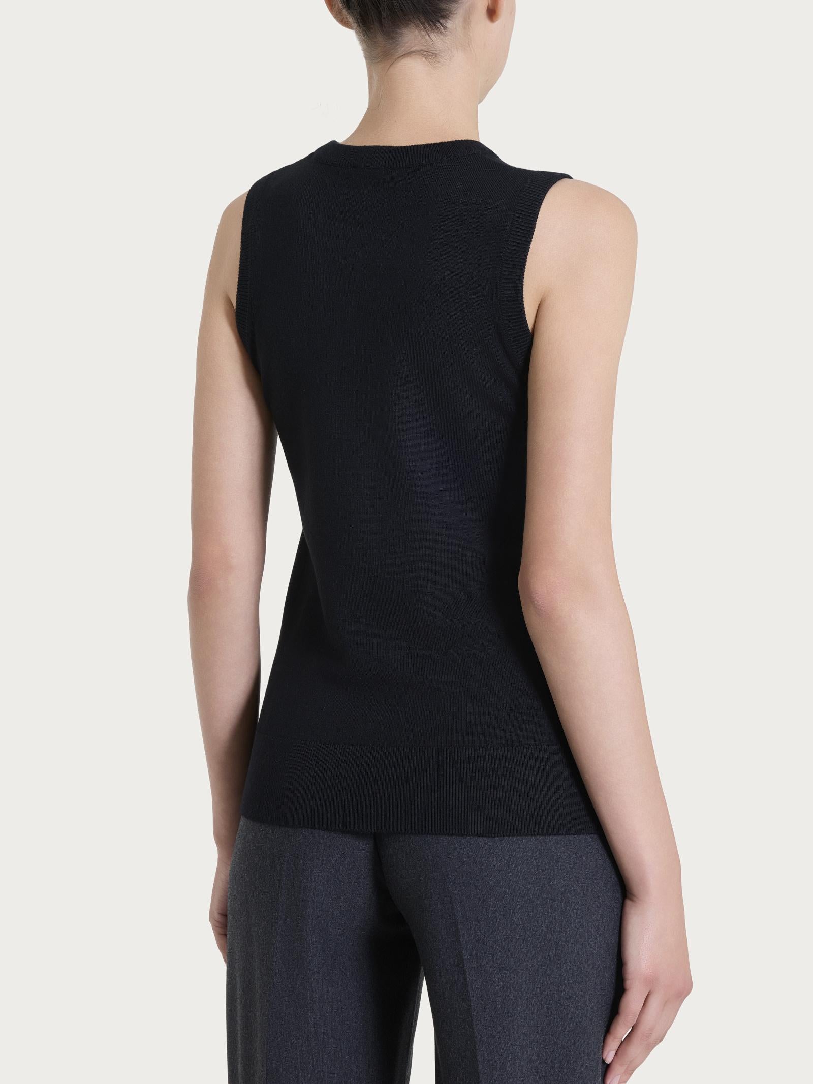 Maglia smanicata da donna in misto viscosa, tessuto in finezza 12, caldo e confortevole.