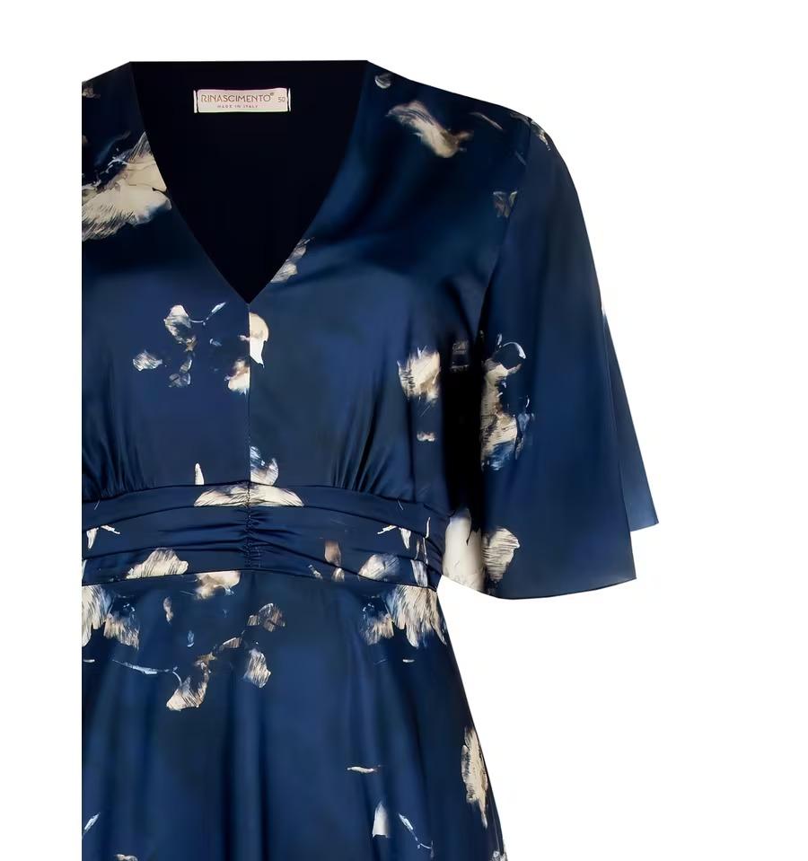 Il design presenta una silhouette lunga e slanciata, scollo a V incrociato che esalta il décolleté, maniche corte ad aletta e una raffinata stampa floreale all-over che dona un tocco romantico e femminile. Il dettaglio elasticizzato sul retro garantisce una vestibilità easy fit, adattandosi armoniosamente alle forme curvy e definendo il punto vita con naturalezza.