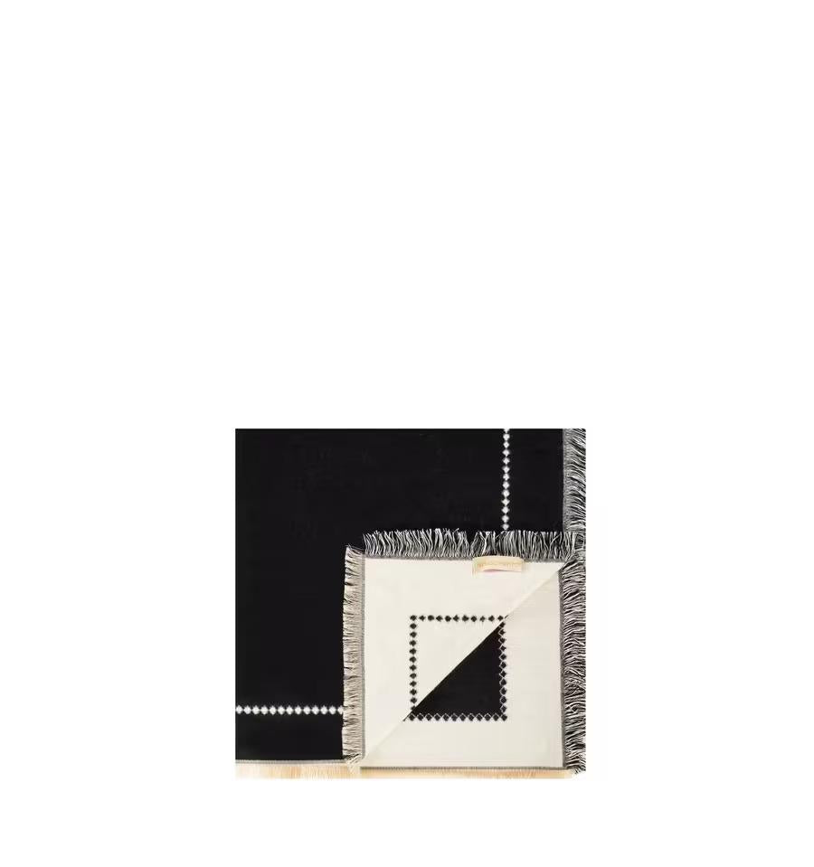 Avvolgente accessorio dal fit morbido, leggero e caldo. In soffice misto filati con mano vellutata, rifinito da frange e profilo a micro-borchie jacquard. Ampio formato per styling versatile: sulle spalle come stola, annodato al collo o sulla borsa. Perfetto da ufficio a everyday, fino all'aperitivo.