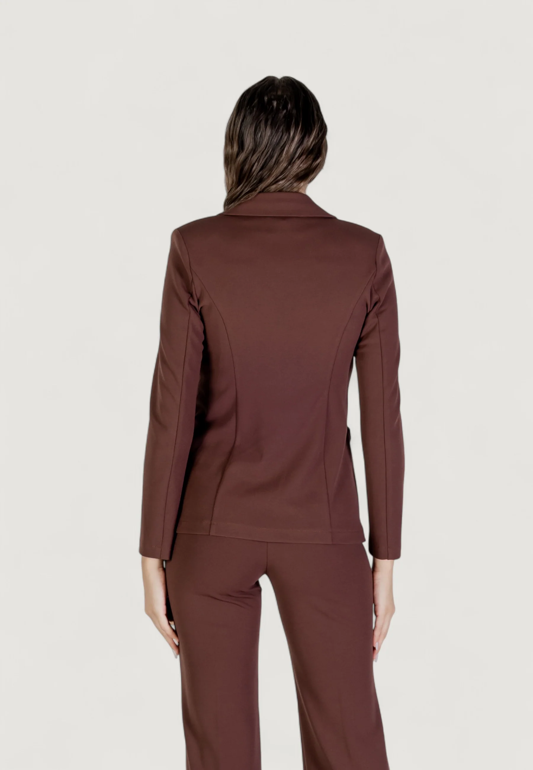 Giacca doppiopetto con colletto con revers e scollo a V, vestibilità slim e chiusura con bottoni.