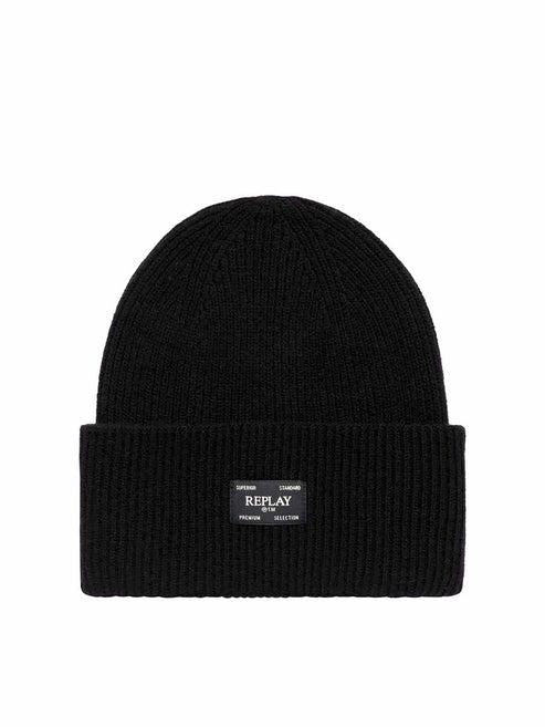 Berretto realizzato in morbido e caldo tessuto di misto lana e cashmere riciclato lavorato a costine. Il risvolto presenta un'etichetta logata applicata sul davanti, che trasmette l'essenza del brand. L'impiego di cashmere riciclato testimonia l'impegno di Replayper una moda sostenibile.