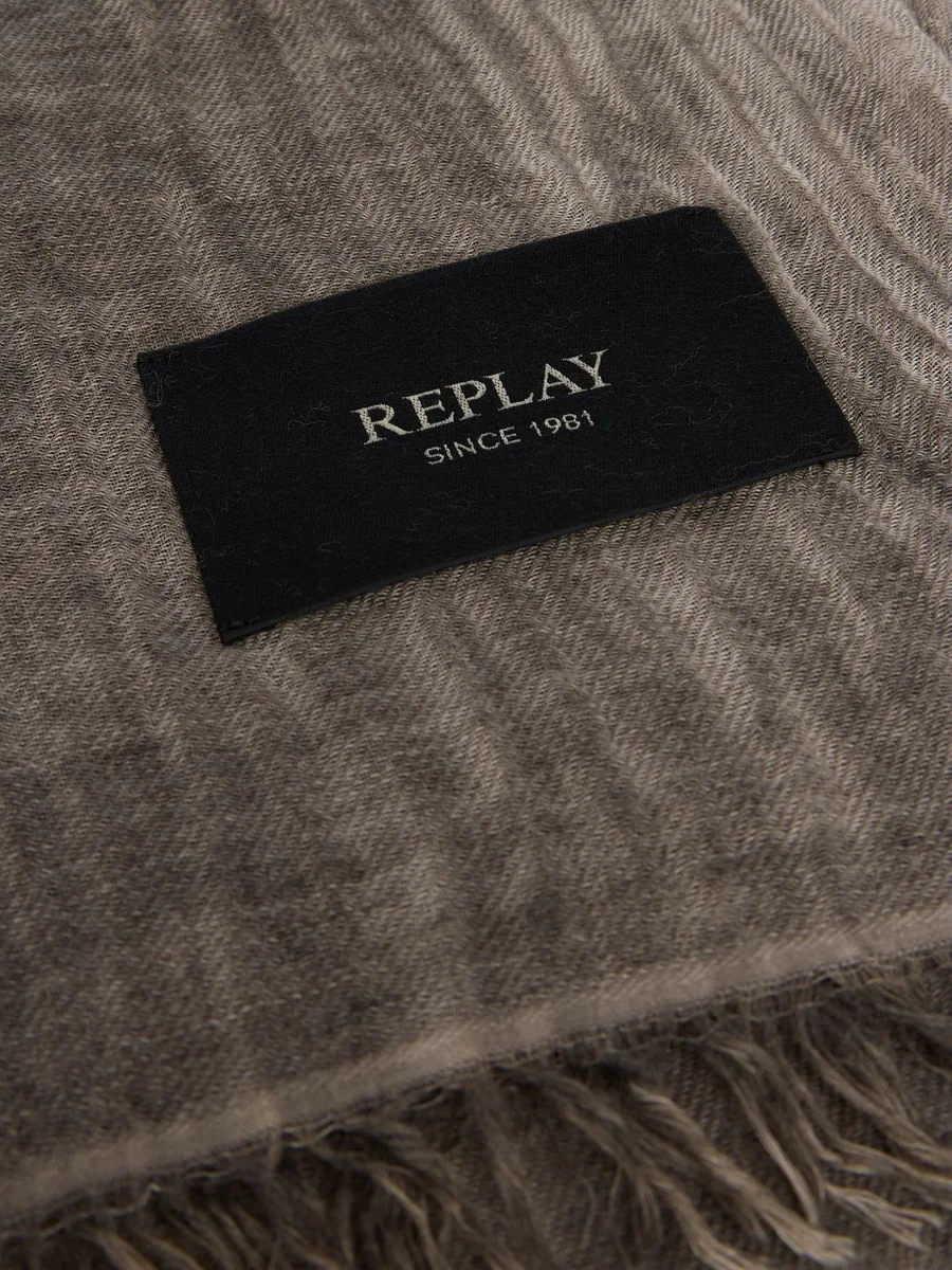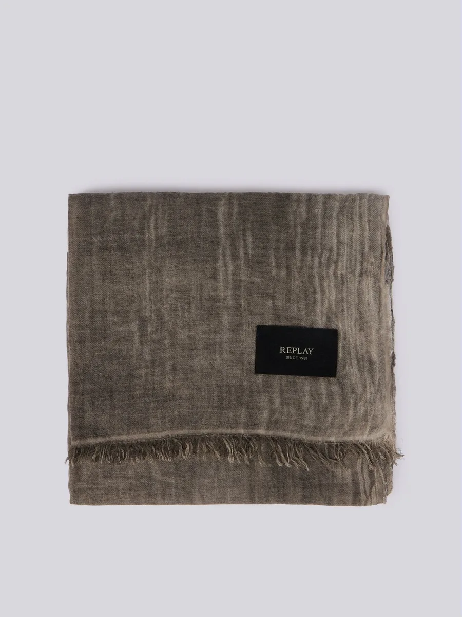 Sciarpa realizzata in un morbido filato di misto lana dal particolare effetto scolorito. Il modello è rifinito con piccole frange eun'etichetta logata applicata al fondo.