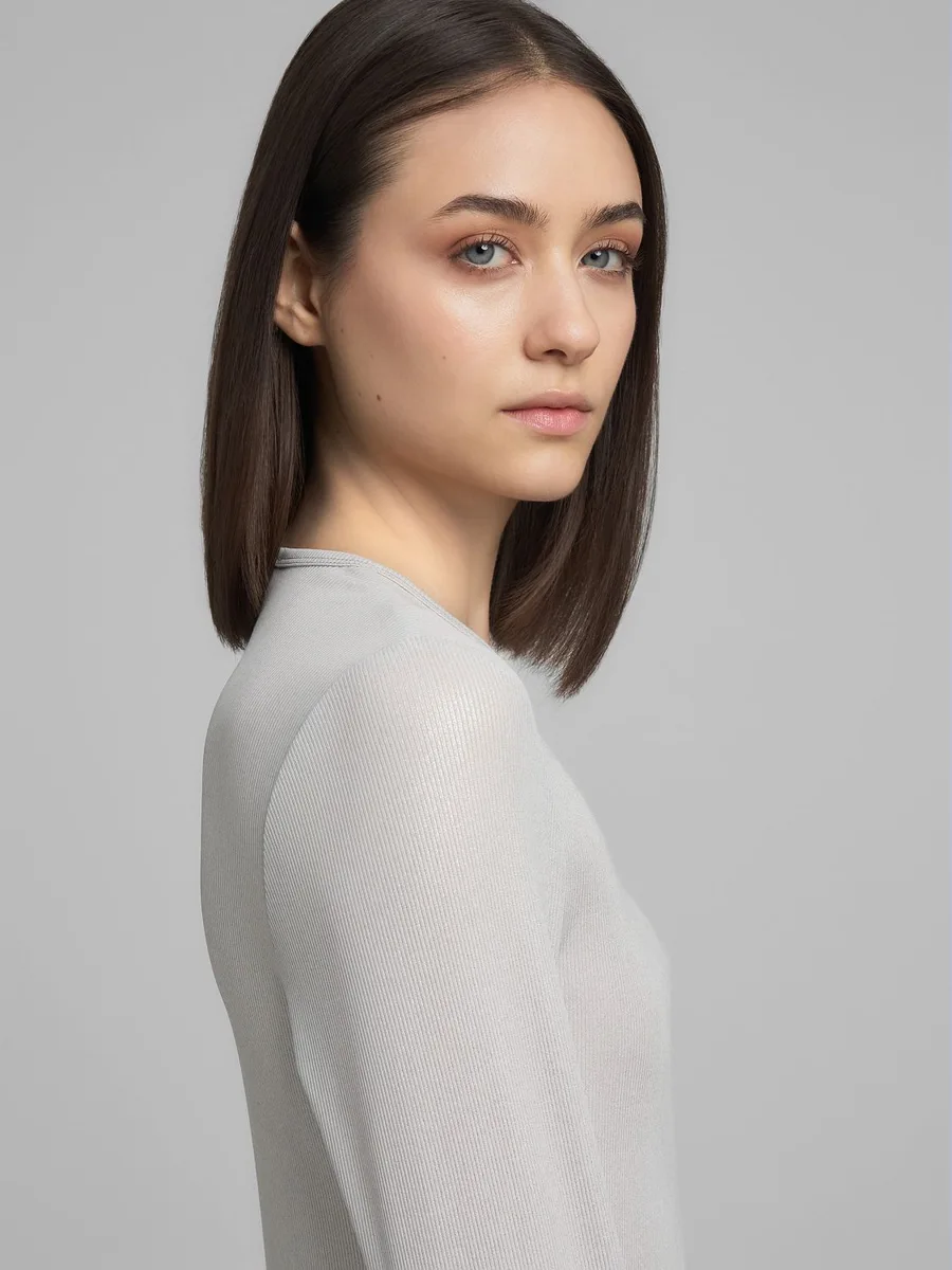 T-shirt girocollo dalla vestibilità aderente realizzata in tessuto tecnico stretch dalla finitura lucida. Il modello presenta maniche lunghe ed è caratterizzato da una lavorazione a costine su tutto il capo. Completa il design l'iconico rivetto R applicato sul retro.