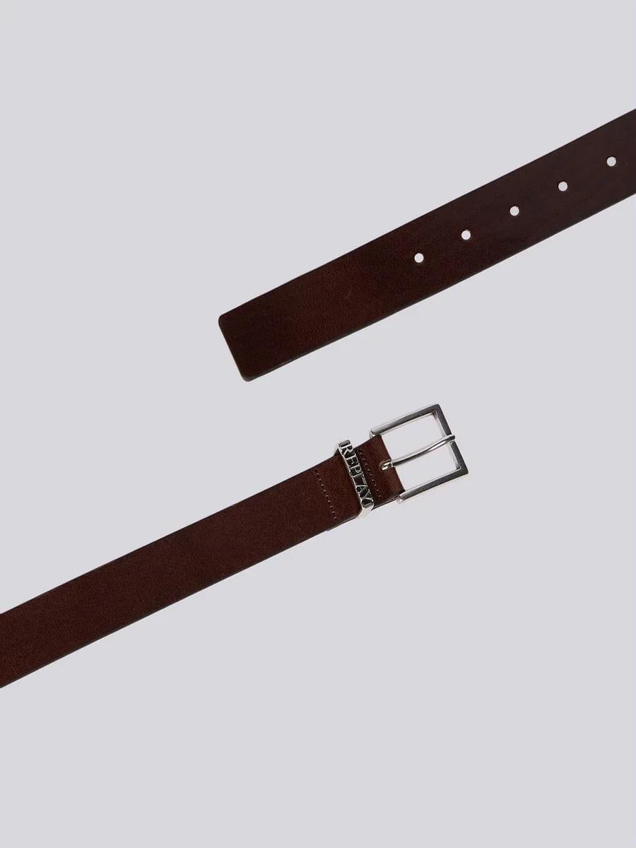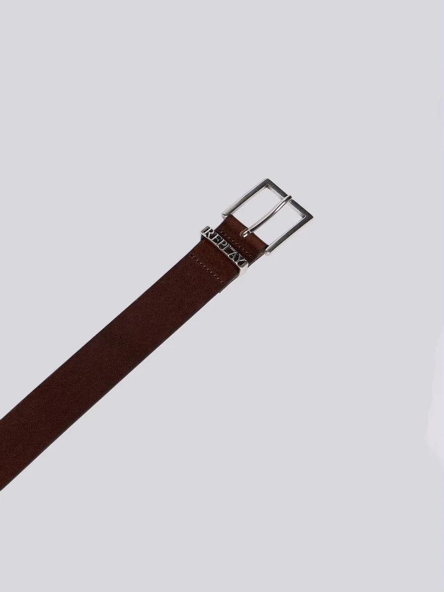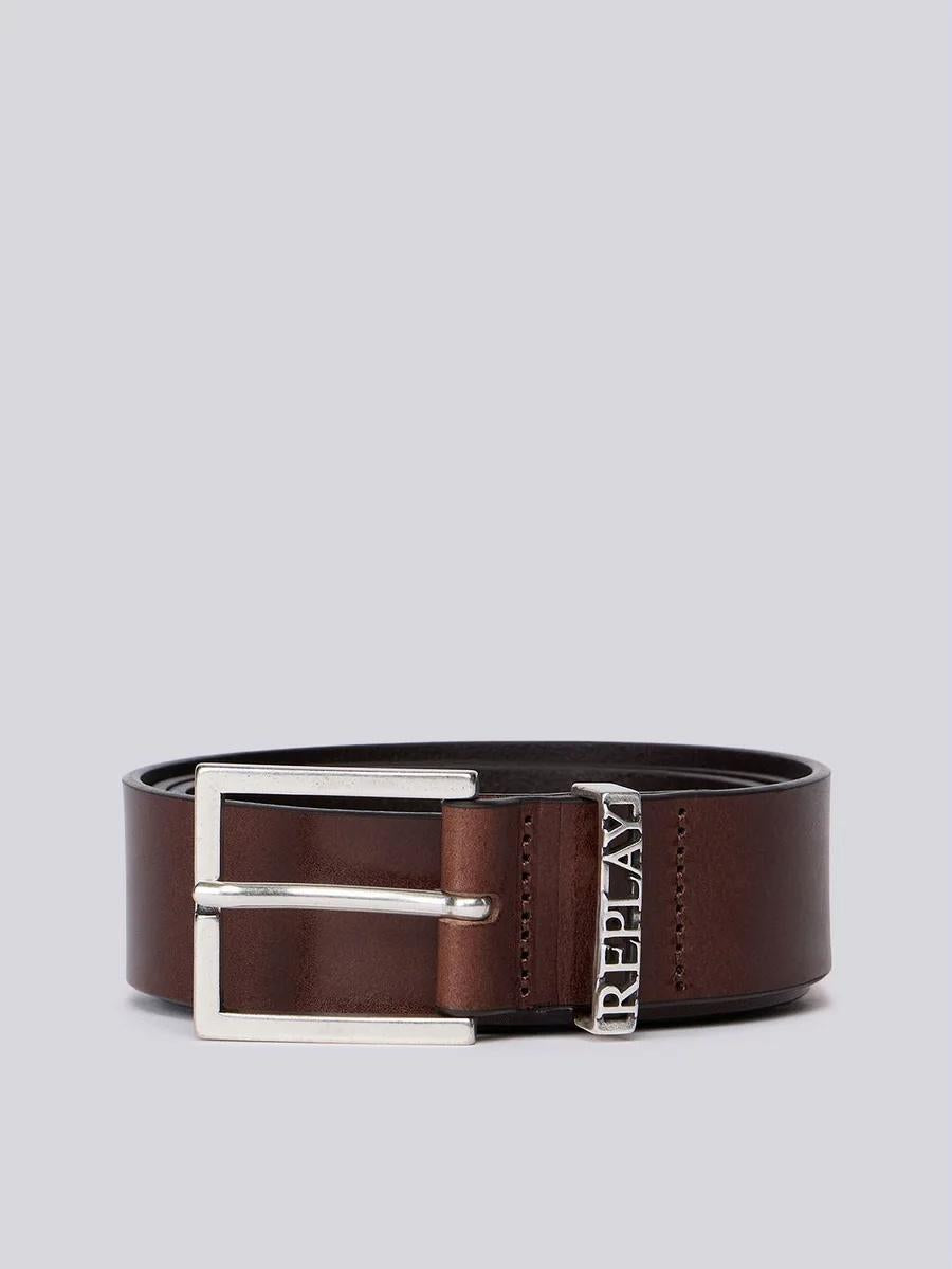 Cintura realizzata in morbida pelle bovina pull-up con un leggero effetto martellato. Presenta una fibbia quadrata e un passante traforato con la scritta Replay. Altezza: 3,5 cm.