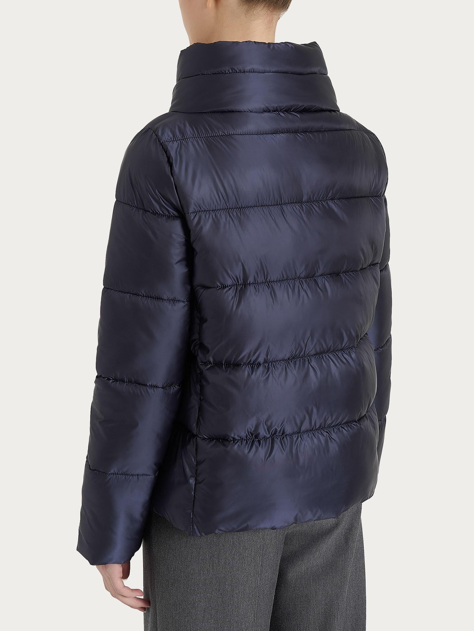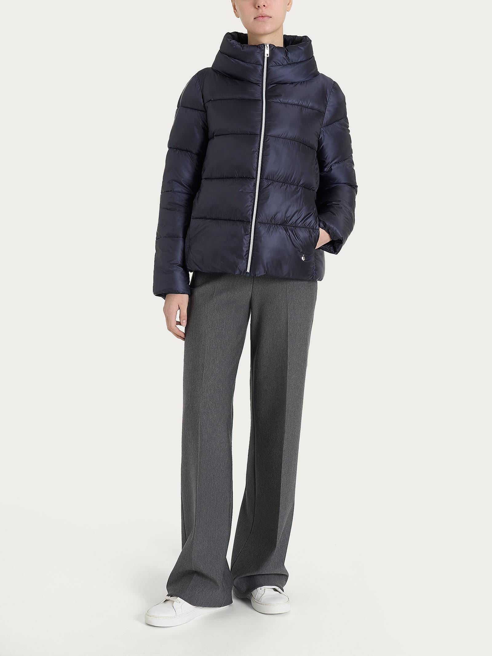 Piumino con collo alto da donna con chiusura frontale con zip e pratiche tasche laterali.