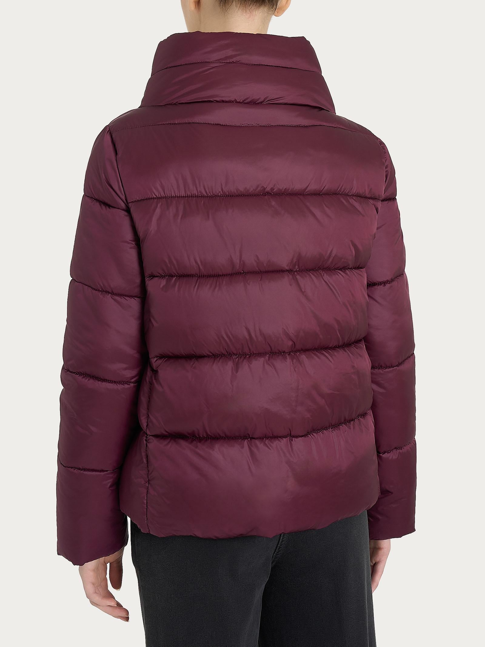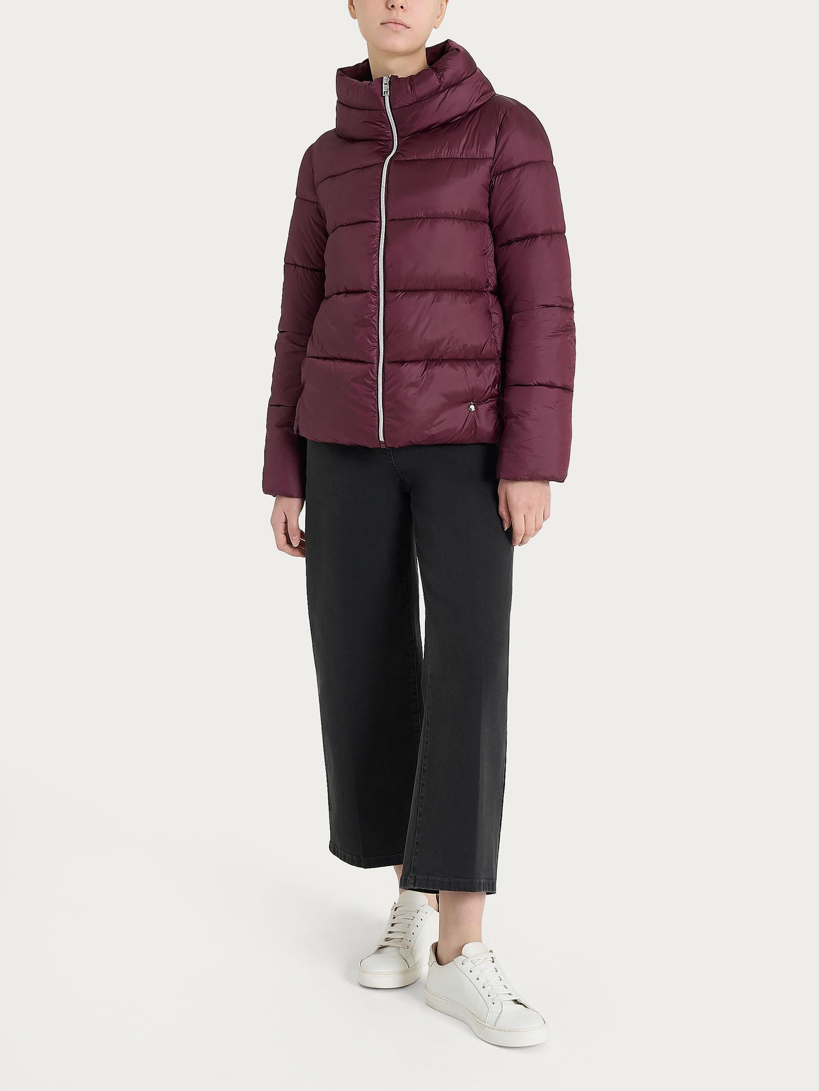 Piumino con collo alto da donna con chiusura frontale con zip e pratiche tasche laterali.