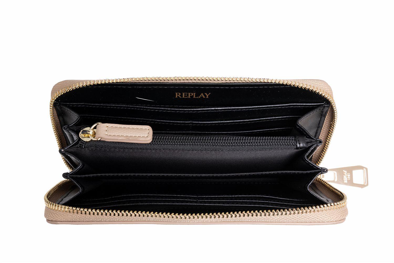 Realizzato con una composizione di 54% poliuretano e 46% poliestere, questo portafoglio è caratterizzato da una superficie effetto pelle martellata che ne esalta l'eleganza e la resistenza. Dotato di una chiusura con zip robusta e dettagli metallici dorati, tra cui il logo Replay in rilievo sulla parte frontale, offre ampio spazio interno per carte, banconote e monete. Perfetto per la vita quotidiana così come per occasioni speciali, rappresenta la scelta ideale per chi cerca un accessorio pratico e allo stesso tempo di tendenza.
