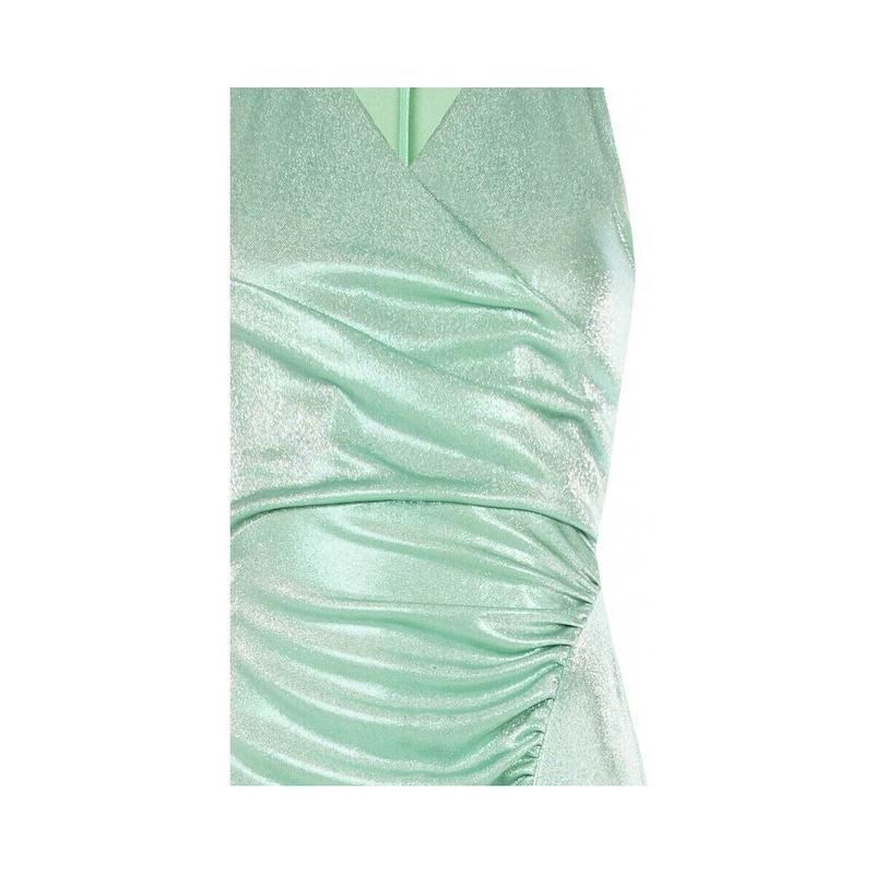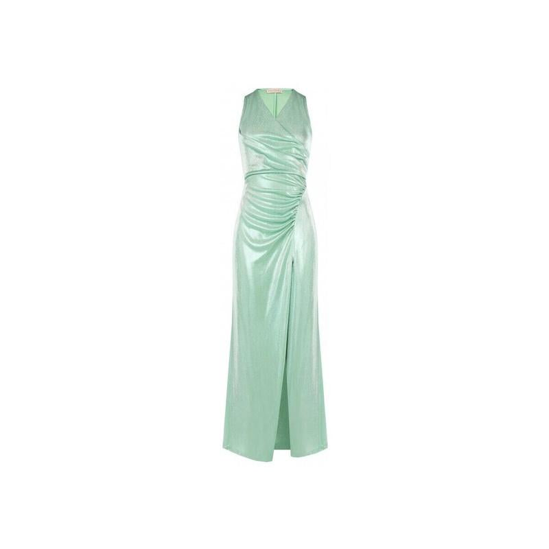 Lungo e snellente, in morbido jersey laminato che segue le forme senza segnare. Scollo incrociato e arricciature laterali esaltano il punto vita, mentre lo spacco frontale dona movimento a ogni passo. Perfetto per feste e cerimonie in cui vuoi sentirti una star.
